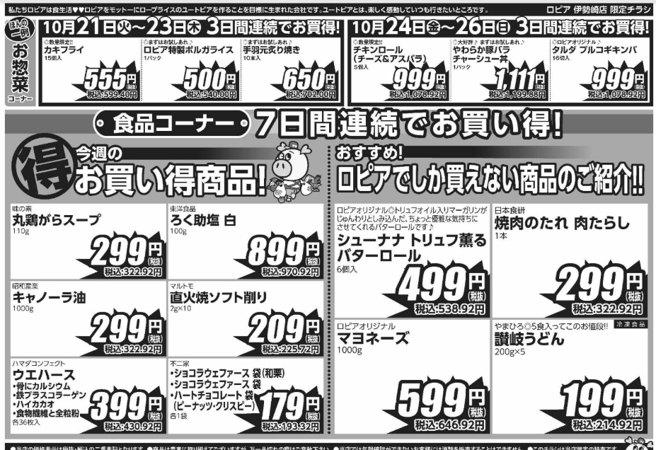 ロピア伊勢崎店の『最新のチラシ』2025年10月21日(火)~10月27日(月)を紹介いたします。