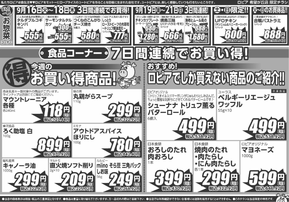 ロピア希望が丘店の最新チラシ【2025年9月16日(火)~9月22日(月)】