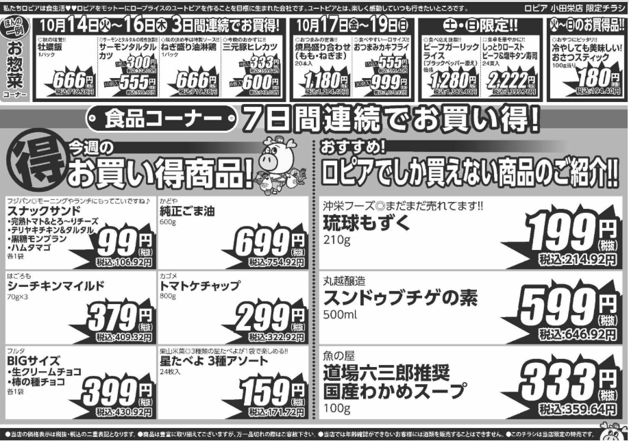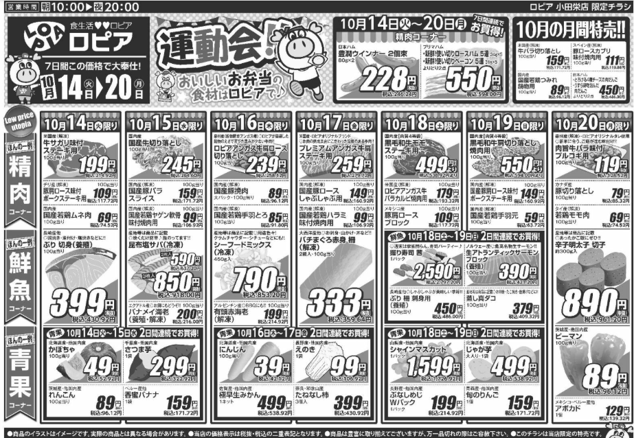 ロピア小田栄店の『最新のチラシ』2025年10月14日(火)~10月20日(月)を紹介いたします。